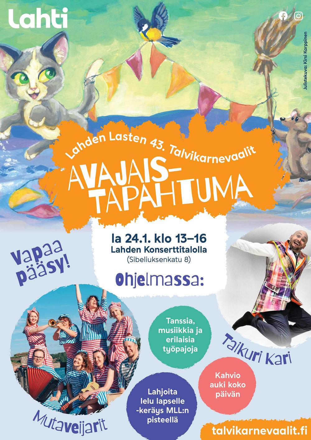 Lahden Lasten talvikarnevaalit pidetään 43. kerran ja koko perheen, maksuton avajaistapahtuma tarjoaa runsaasti monipuolista ohjelmaa sekä erilaisia työpajoja. MLL:n Lahden yhdistys on perinteiseen…
