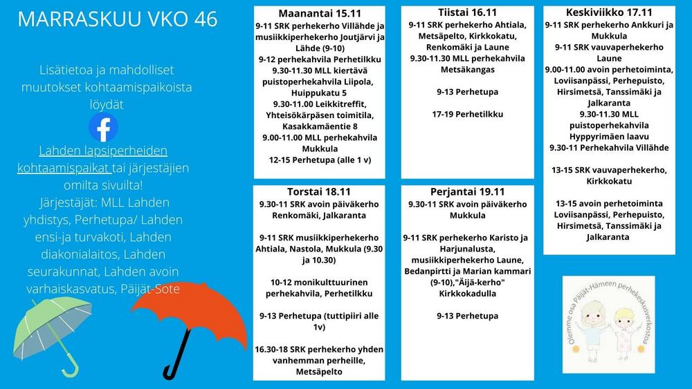 Avoimet kohtaamispaikat Lahdessa viikko 46