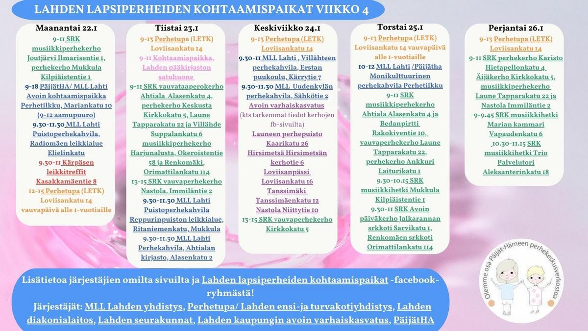 Lahden alueen avoimet lapsiperheiden kohtaamispaikat vko 4