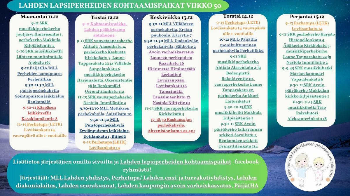 Lahden alueen kohtaamispaikat vko 50