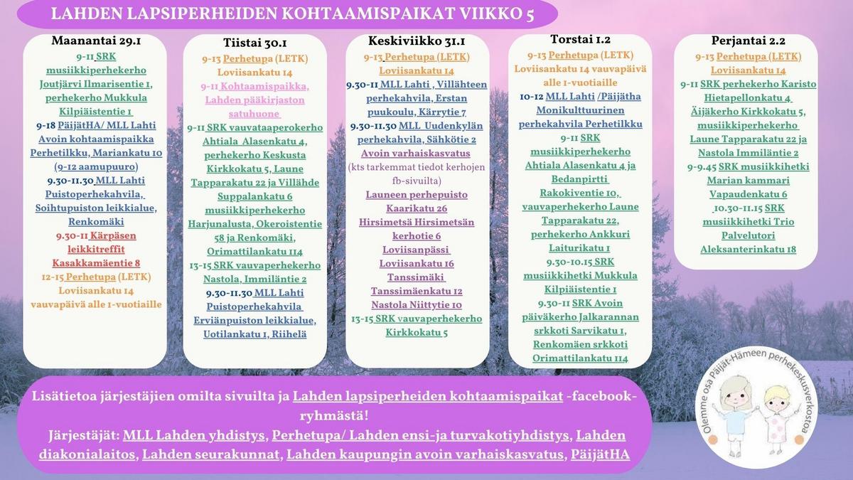 Lahden alueen lapsiperheiden avoimet kohtaamispaikat vko 5