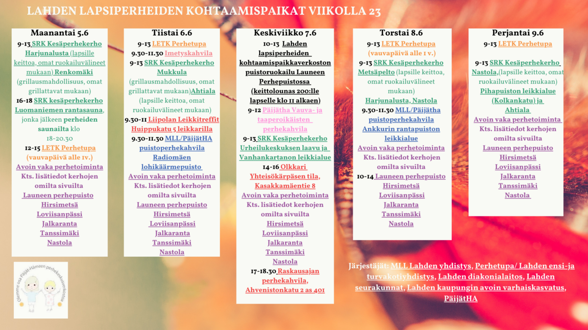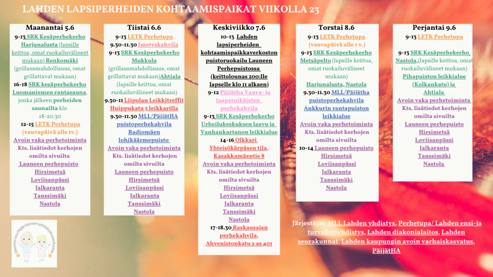 Lahden avoimet kohtaamispaikat vko 23