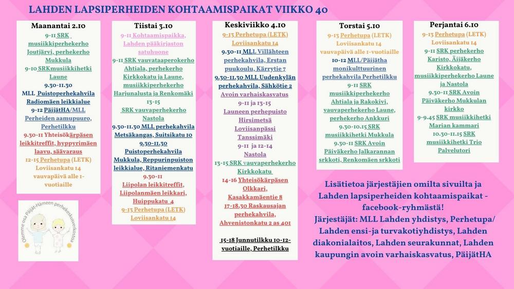 Lahden lapsiperheiden avoimet kohtaamispaikat vko 40