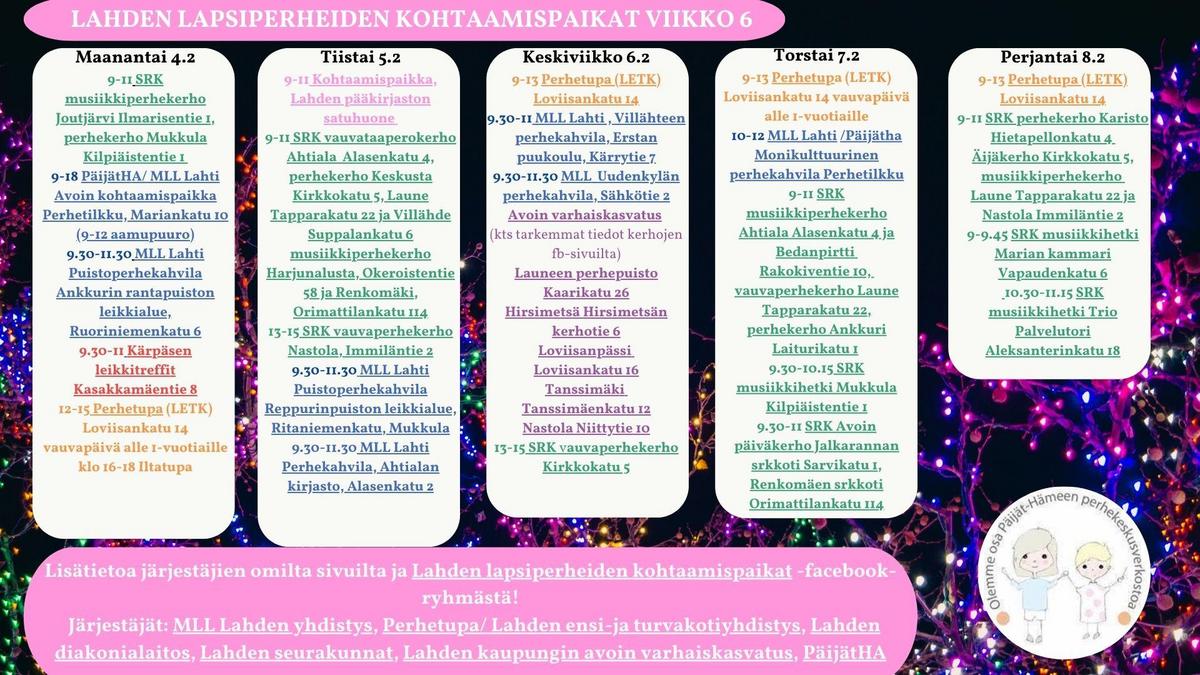 Lahden alueen lapsiperheiden avoimet kohtaamispaikat viikko 6