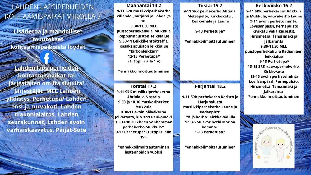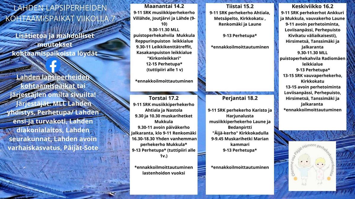 Lahden lapsiperheiden kohtaamispaikat viikolla 7