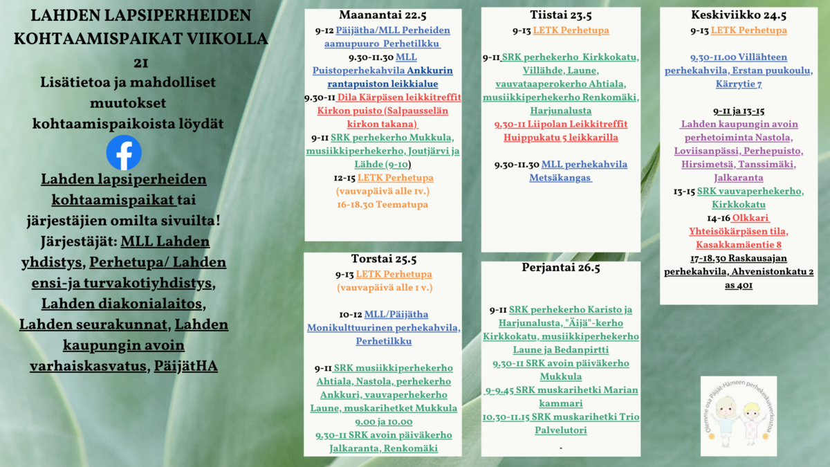 Lapsiperheiden avoimet kohtaamispaikat lahdessa vko 21