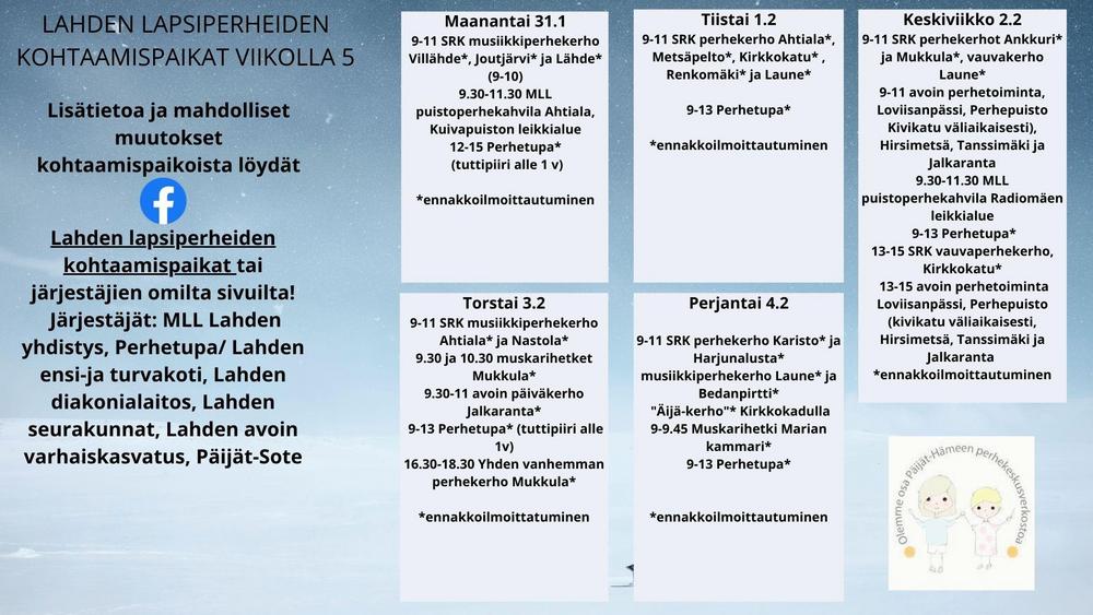 Lapsiperheiden avoimet kohtaamispaikat viikolla 5