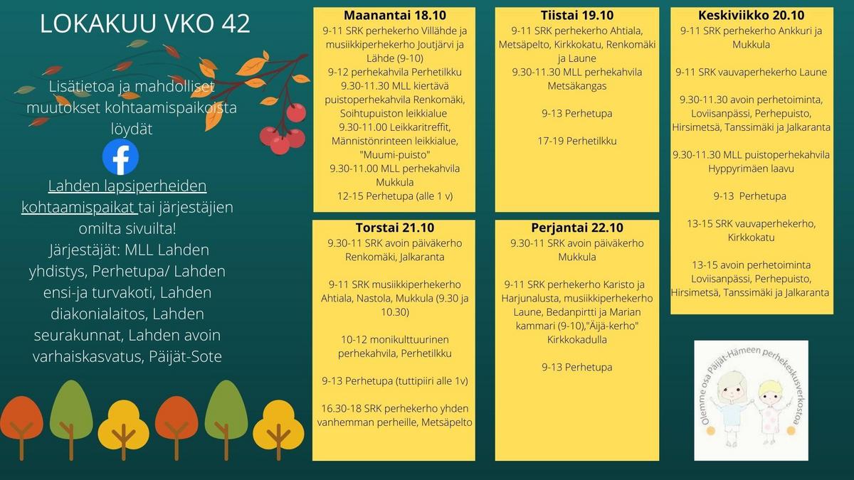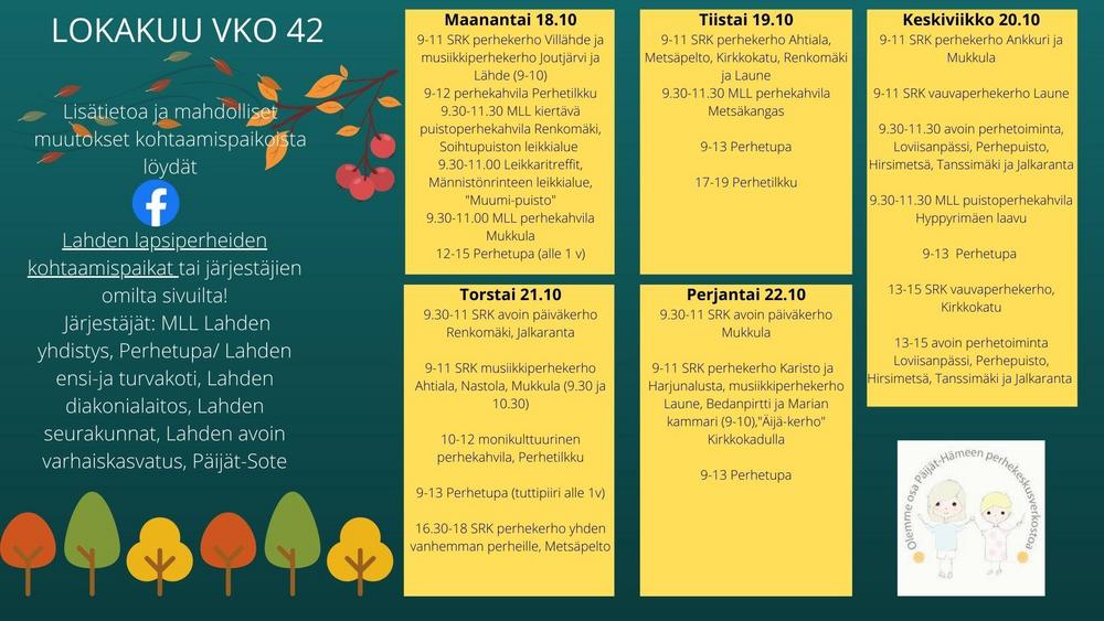 Lapsiperhiden kohtaamispaikat viikolla 42